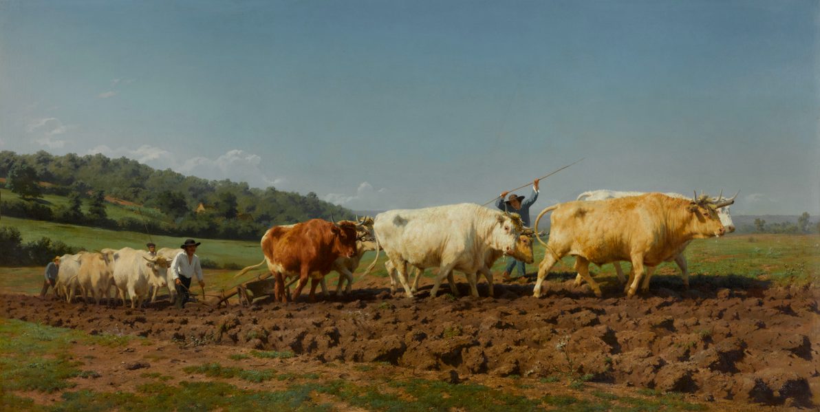 Alors que la figuration de l’animal était jugée peu digne d’intérêt en raison de sa faible portée morale, les œuvres d’art animalier furent présentées massivement au Salon de 1848; le scrutin des artistes y récompensa les productions de Rosa Bonheur d’une médaille d’Or et le gouvernement lui commanda un grand format: le Labourage nivernais. Ce qui apparaît comme un tournant dans les hiérarchies picturales est révélateur de la place nouvelle accordée à l’animal dans les sociétés humaines.
